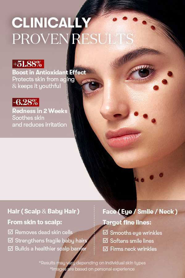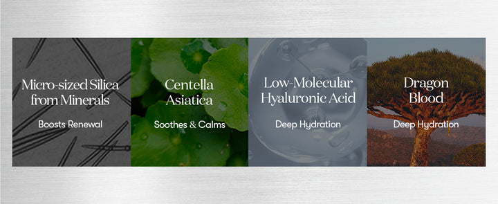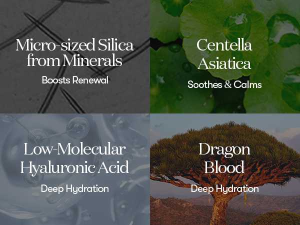 Dragon's Blood (Proanthocyanidin & Catechin), CICA Hyalon, CICA Reedle, Panthenol, Tocopherol, Ceramide Np, Arbutin