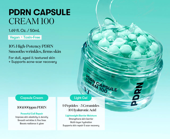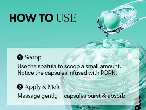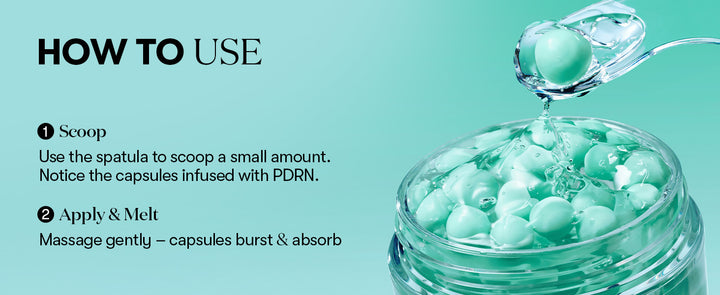• PDRN Capsules in Lightweight Gel Texture : Lightweight yet rich, the gel with visible PDRN capsules melts into skin, refreshing and revitalizing your natural glow.