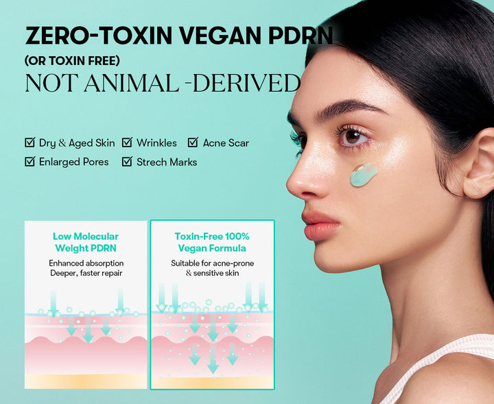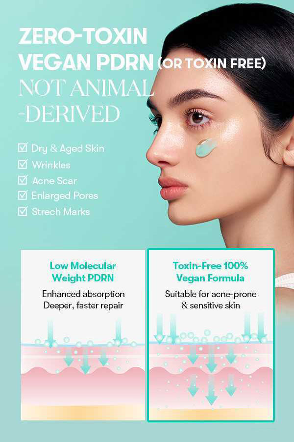 • 100,000ppm PDRN for Firm, Radiant Skin : Powered by 100,000 ppm PDRN, this cream boosts skin regeneration and elasticity without animal-derived ingredients.